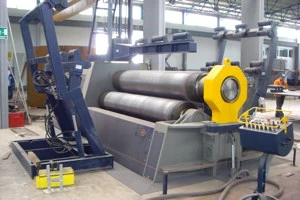 -3 rolls plate bending machine with pinch pyramid plate pre-bending configuration.