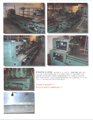1981 Mazak 30" x 33'-10" (406") Engine Lathe, model H30, Taper, Steadies. Under Power.