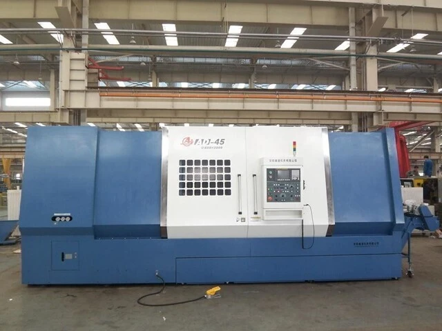 NEW D-F 850mm x 1,500mm (33.469” x 59.06”) Slant Bed CNC LATHE, Model AD45/1500. 5.158” hole thru the spindle. Fanuc 0i-TF CNC Controls.
